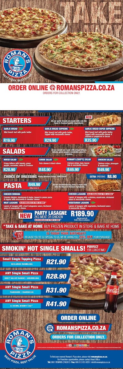 Welcome to Roman's Pizza Mmabatho, a culinary gem nestled in the heart of Mmabatho at Mega City. This pizza restaurant is renowned for its delectable range of pizzas that celebrate fresh, quality ingredients. Whether you’re craving a classic Margherita or a daring specialty pizza, there’s something for everyone.